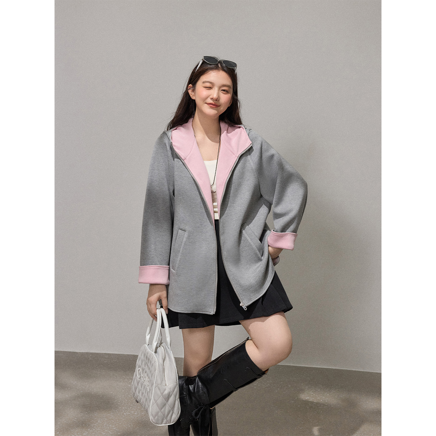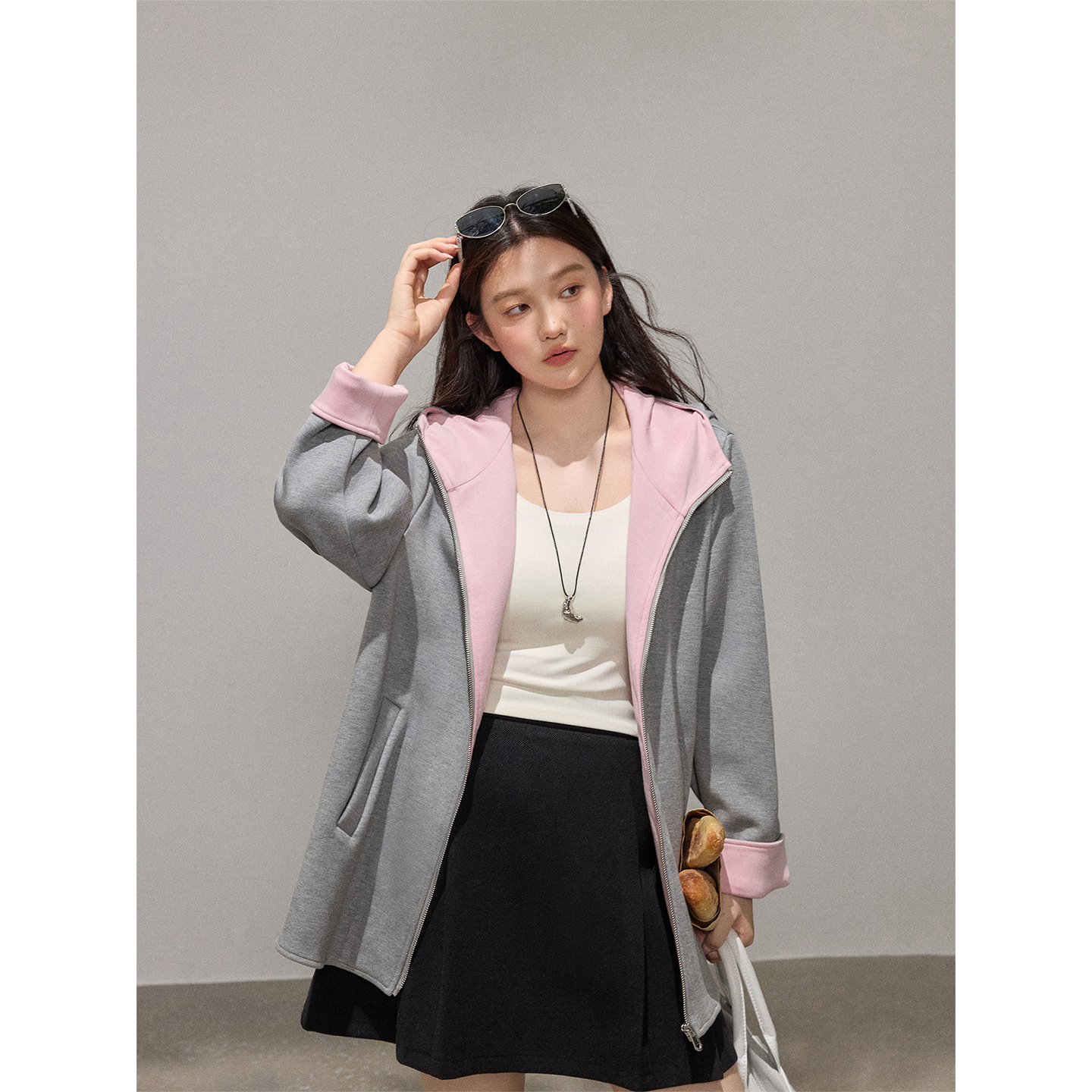 潘不卷"凉风有信"【10/31-11/2限时75折】h韩系灰粉撞色卫衣外套