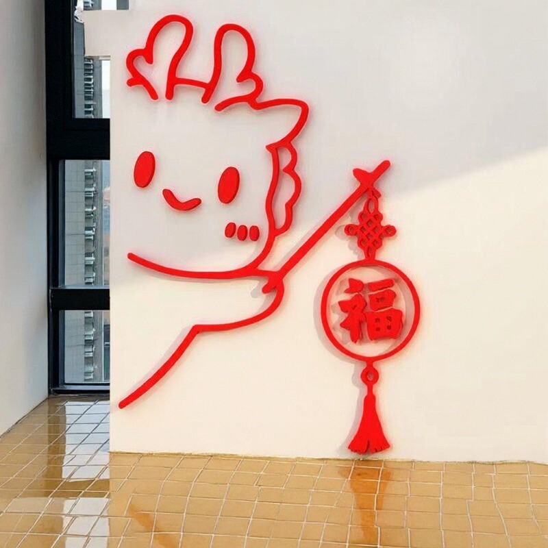 过年窗花背景布置门上贴纸装饰品墙面春节电视机福字新年客厅布置