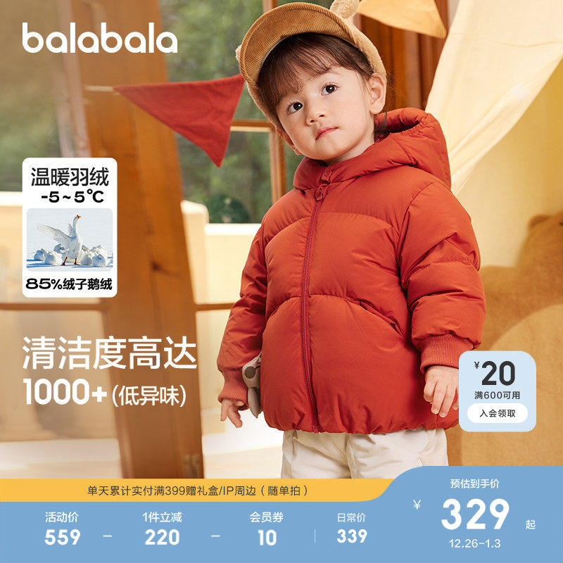 巴拉巴拉童装宝宝鹅绒羽绒服婴儿冬红色拜年服儿童连帽外套保暖潮