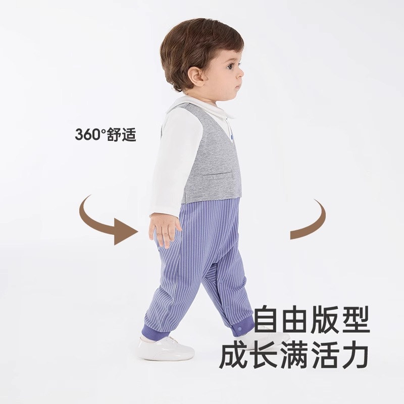 英氏秋冬款婴儿衣服男宝宝羽绒加厚夹棉长袖连体哈衣外出爬服