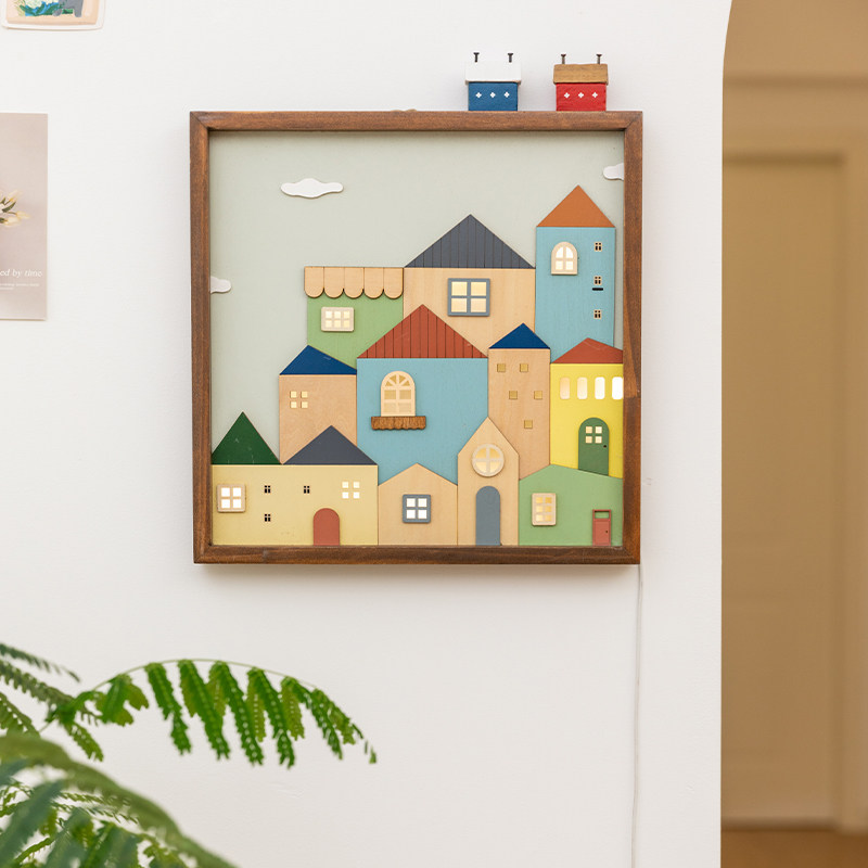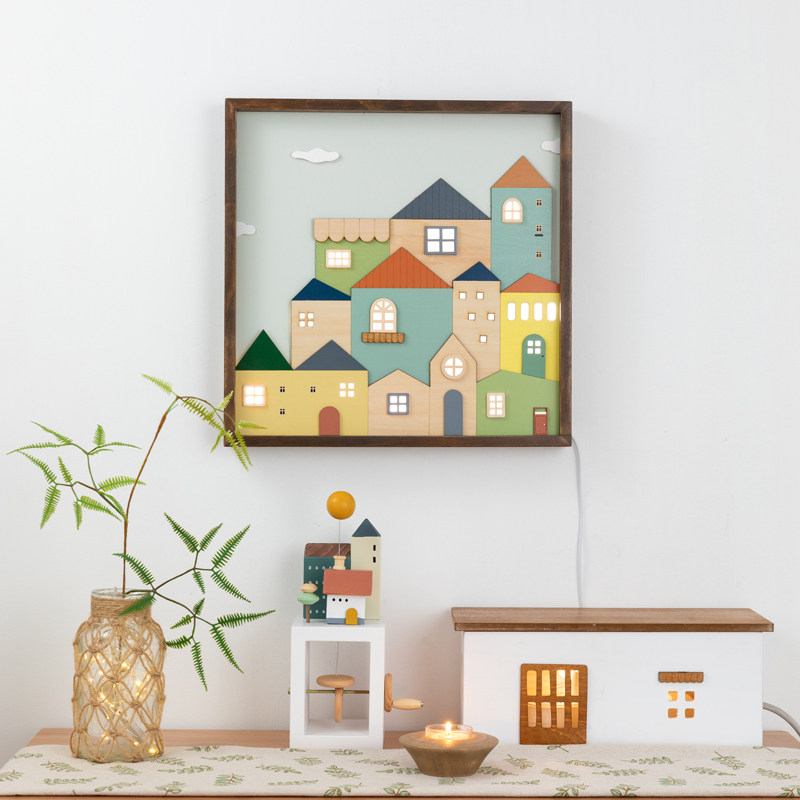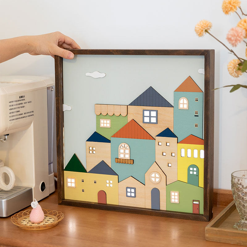 阿楹 高级治愈餐边柜装饰画多巴胺挂件温馨桌面摆件带灯法式奶油
