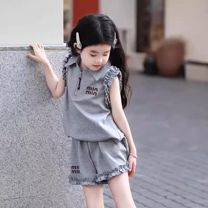 女童休闲夏季Polo短袖套装儿童夏装时尚洋气t恤短裤两件套潮潮流1