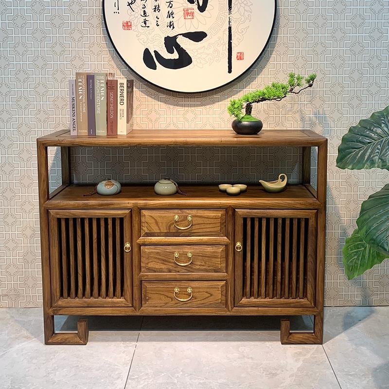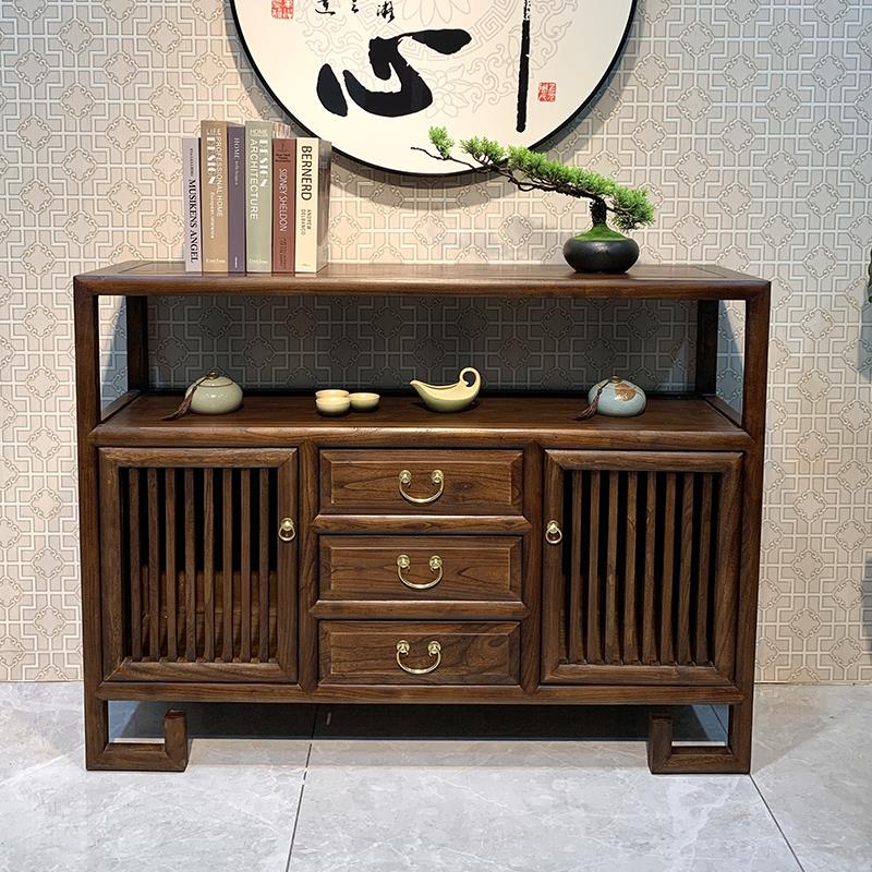 新中式老榆木实木储物柜入户正对门玄关柜客厅日式一体靠墙餐边柜