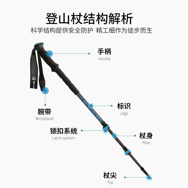 G2超轻碳素登山杖三节外锁碳纤维伸缩手杖徒步户外爬山拐棍装备
