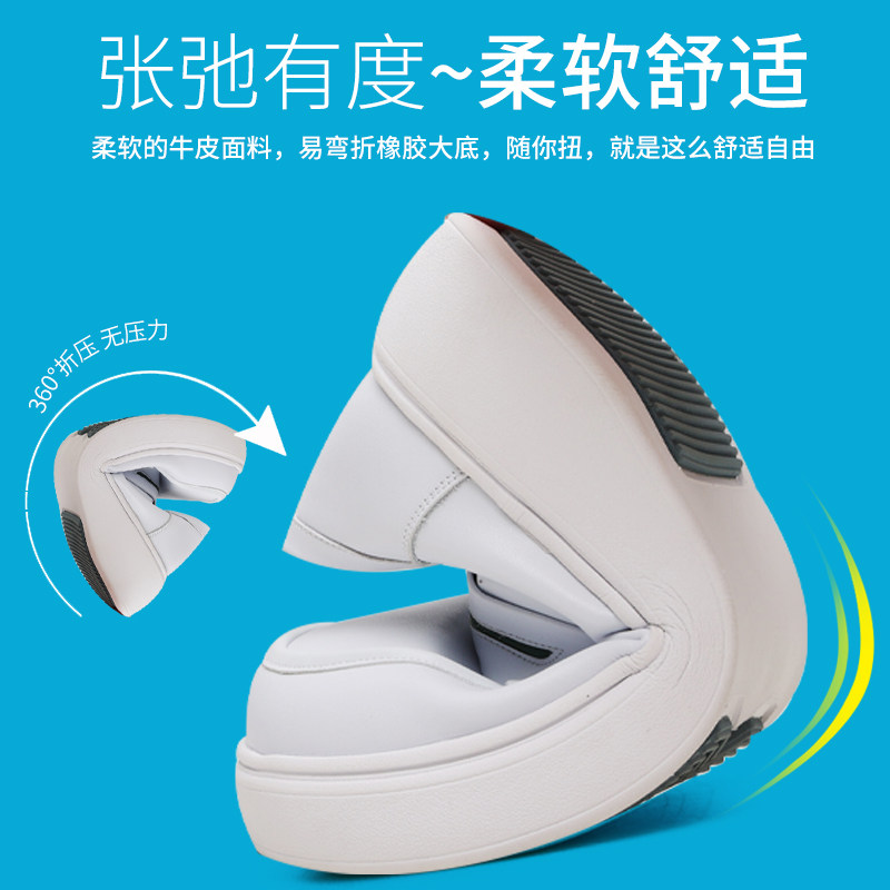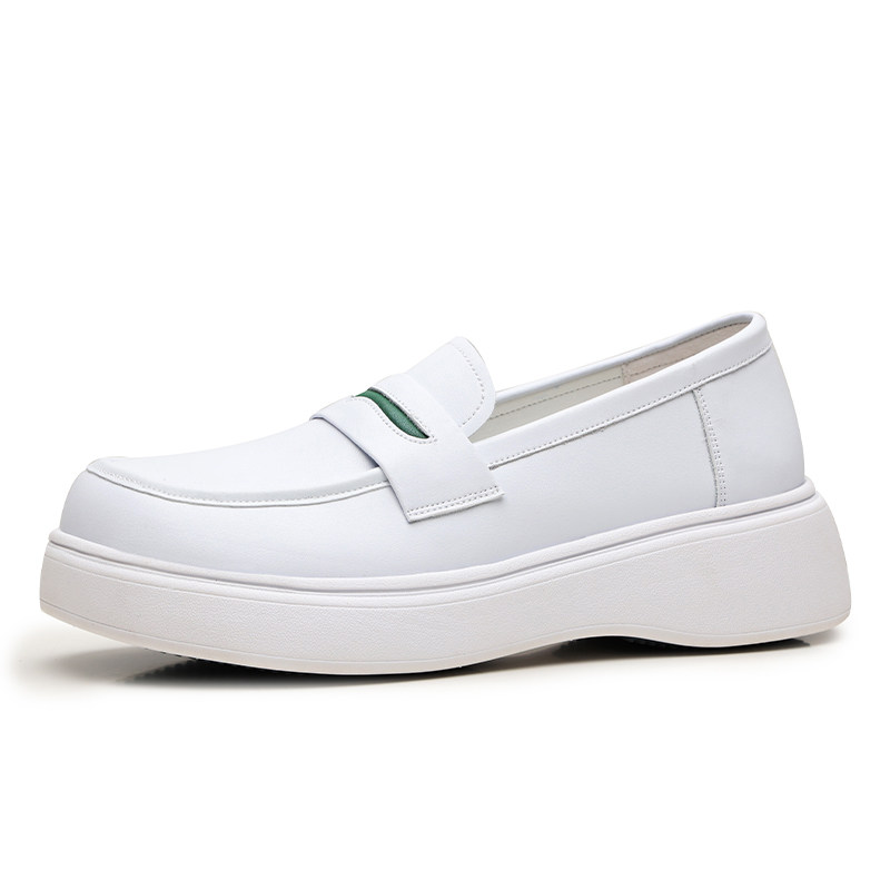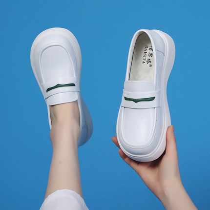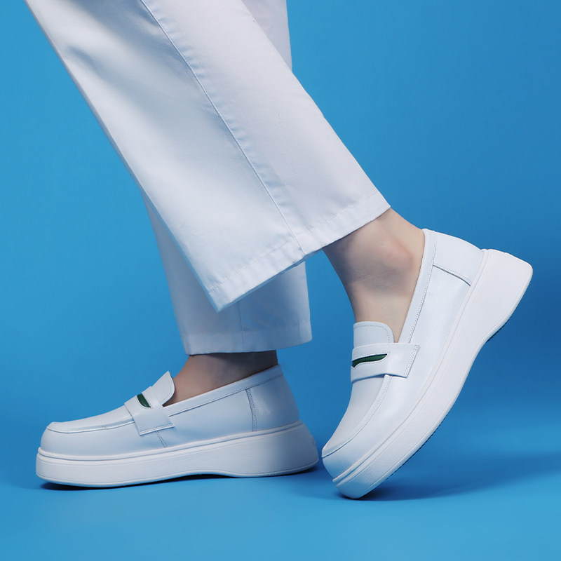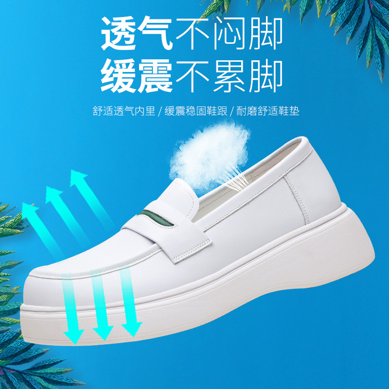 护士鞋女真皮浅口厚底透气平底不累脚乐福鞋舒适平底小白鞋一脚蹬
