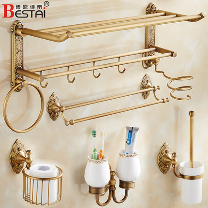 仿古毛巾架浴巾架全铜欧式复古浴室置物架卫生间卫浴五金挂件套装