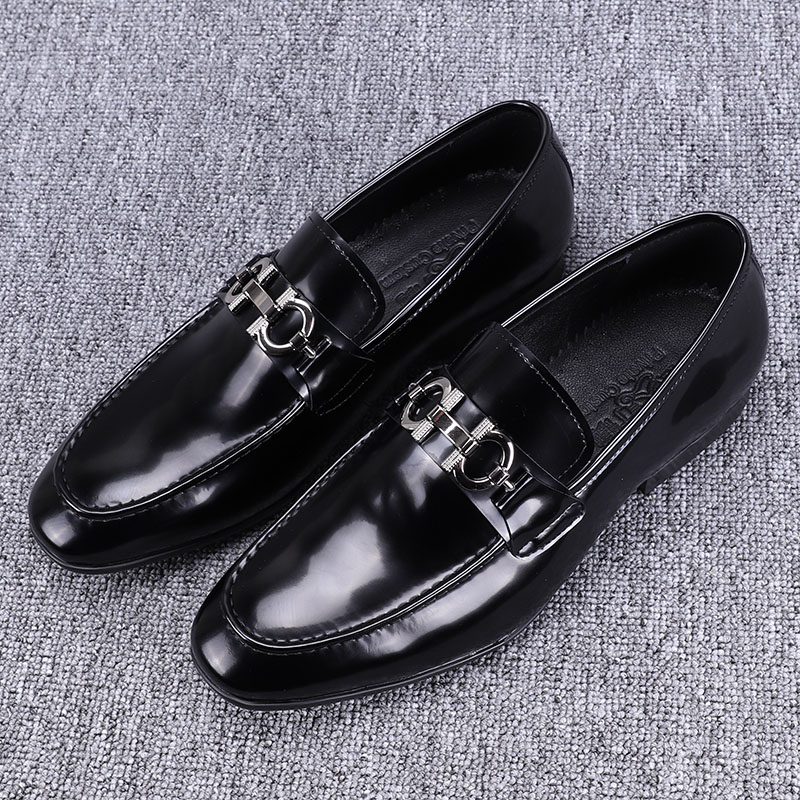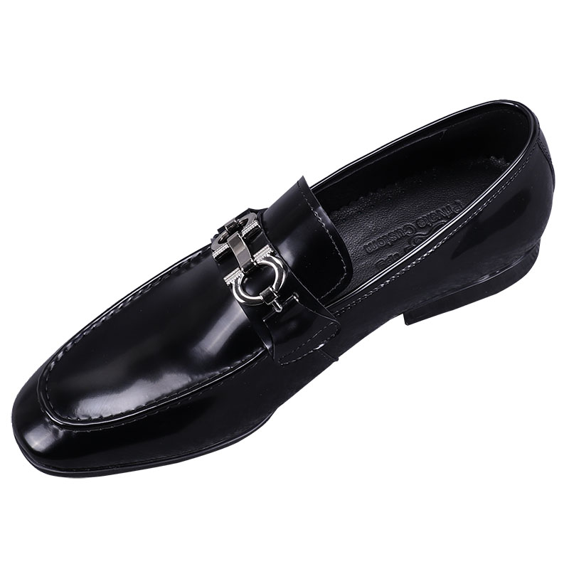私人定制男鞋春季新款2025时尚亮皮真皮皮鞋百搭饰扣韩版休闲鞋潮