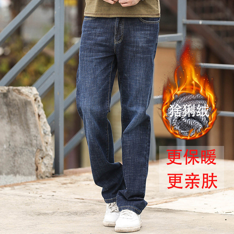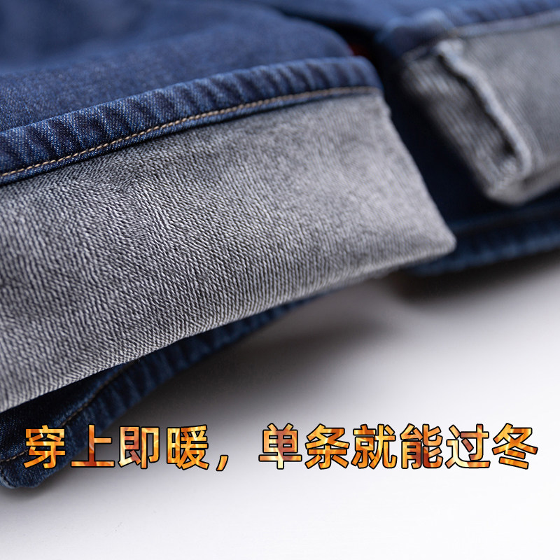 大大牛 御寒保暖加绒加厚牛仔裤男直筒宽松大码深裆弹力无束缚冬