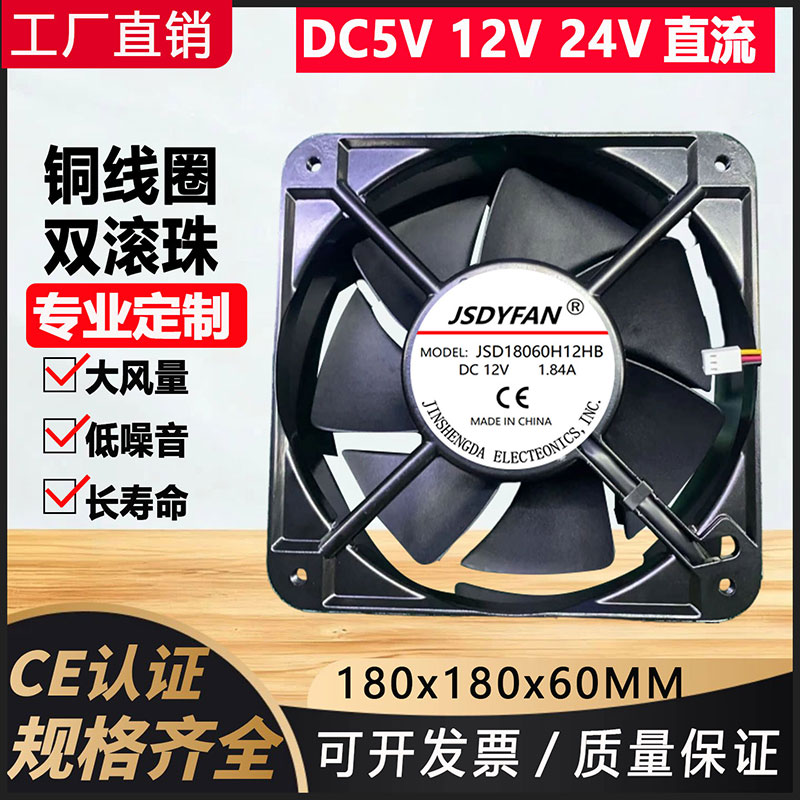 轴流风机 18CM 18060 12v电源机箱机柜双滚珠大风力直流散热风扇