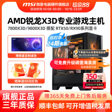 24期免息】微星AMD主机7800X3D/9800X3D/RTX5060Ti/5070Ti/5080/9070XT台式电脑整机电竞游戏DIY组装机海景房
