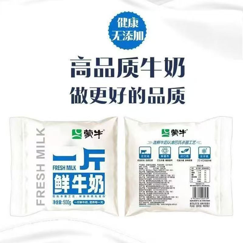 蒙牛一斤鲜牛奶500ml新鲜巴氏杀菌营养早餐百利包低温冷藏