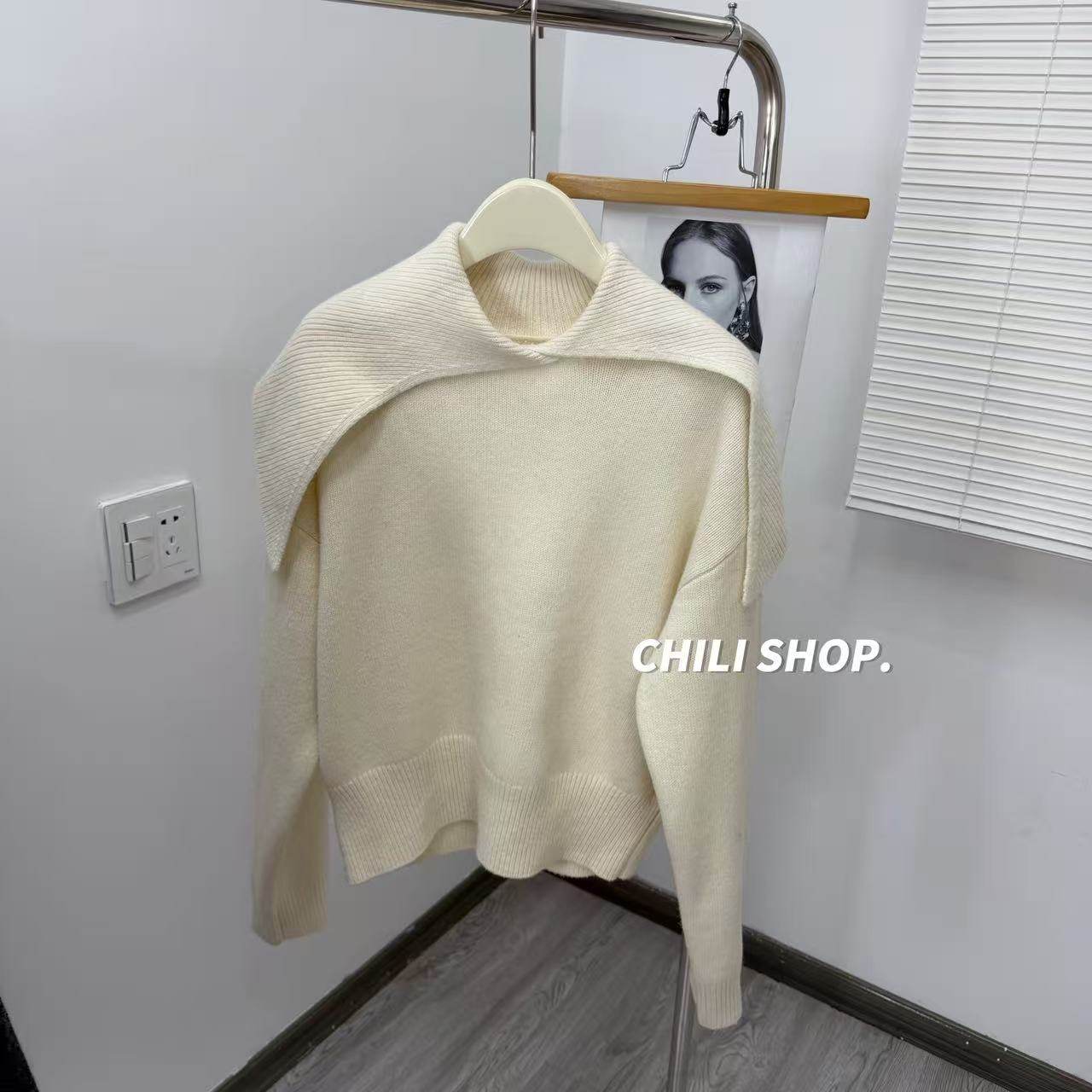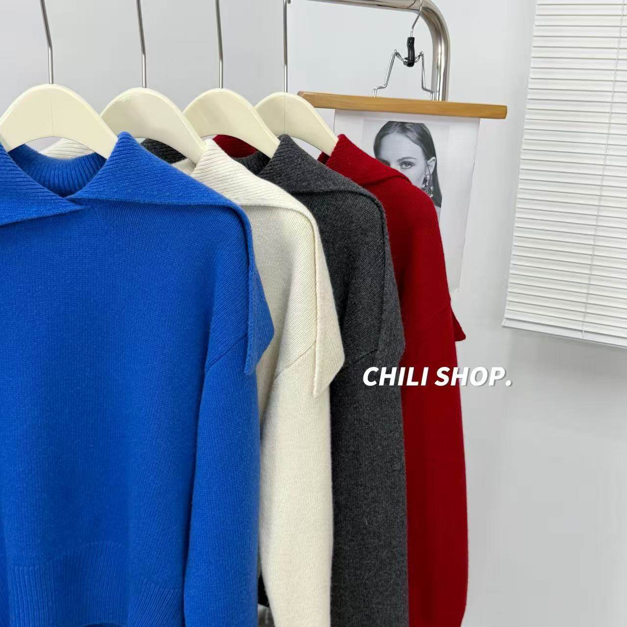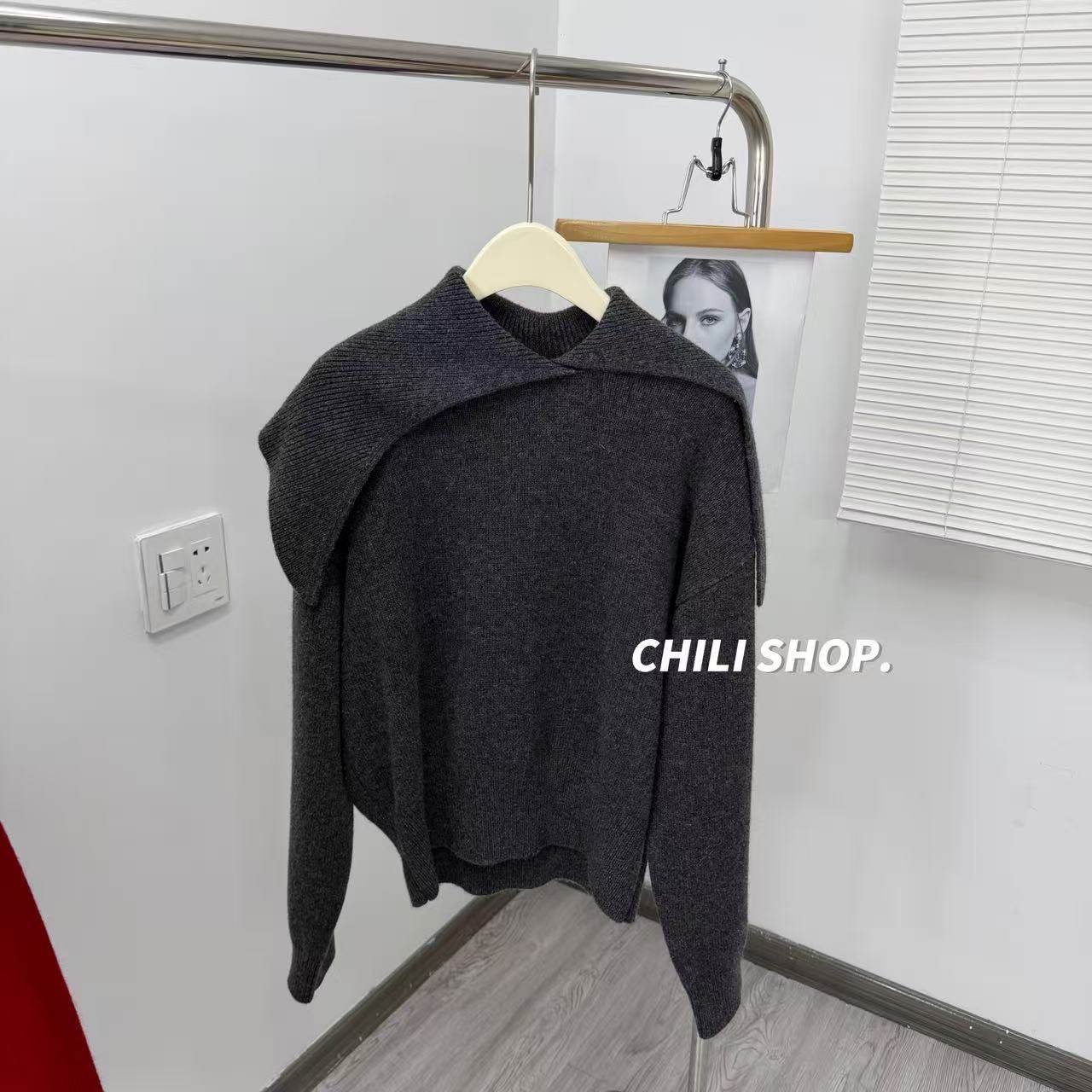 【英英Chili】不规则大翻领设计师款100全羊毛针织毛衣 12.06