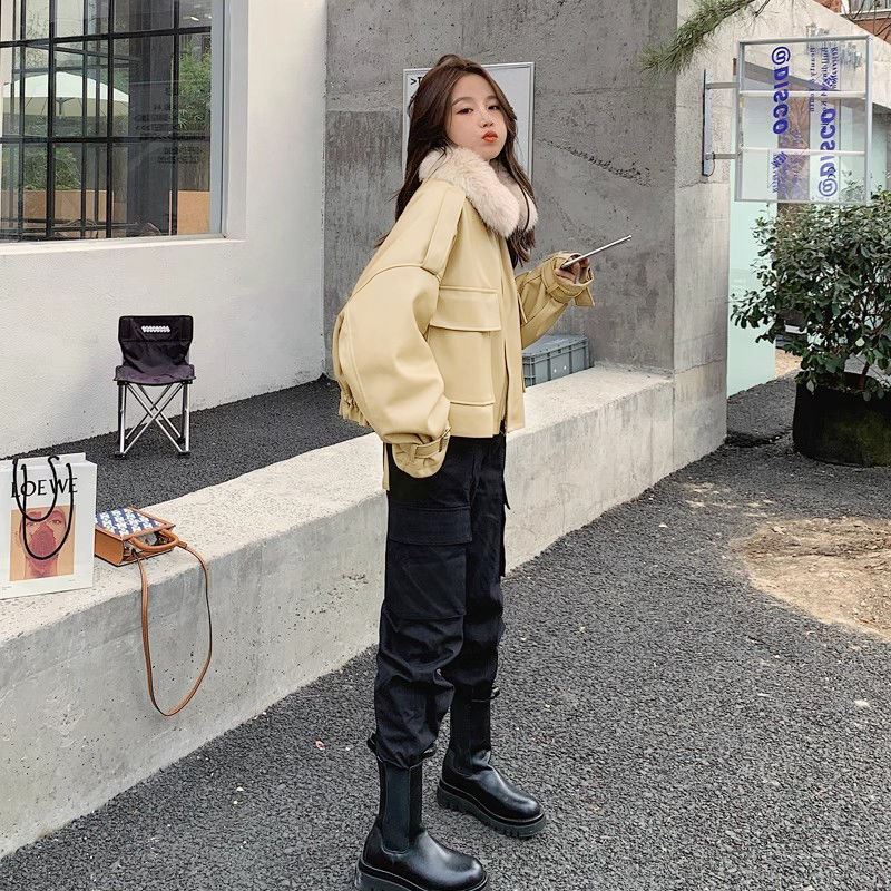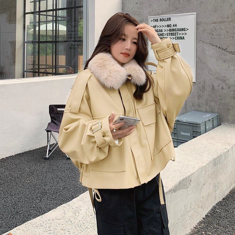 加绒加厚皮衣短款可拆2024秋冬新品仿狐狸毛毛领皮毛一体外套女