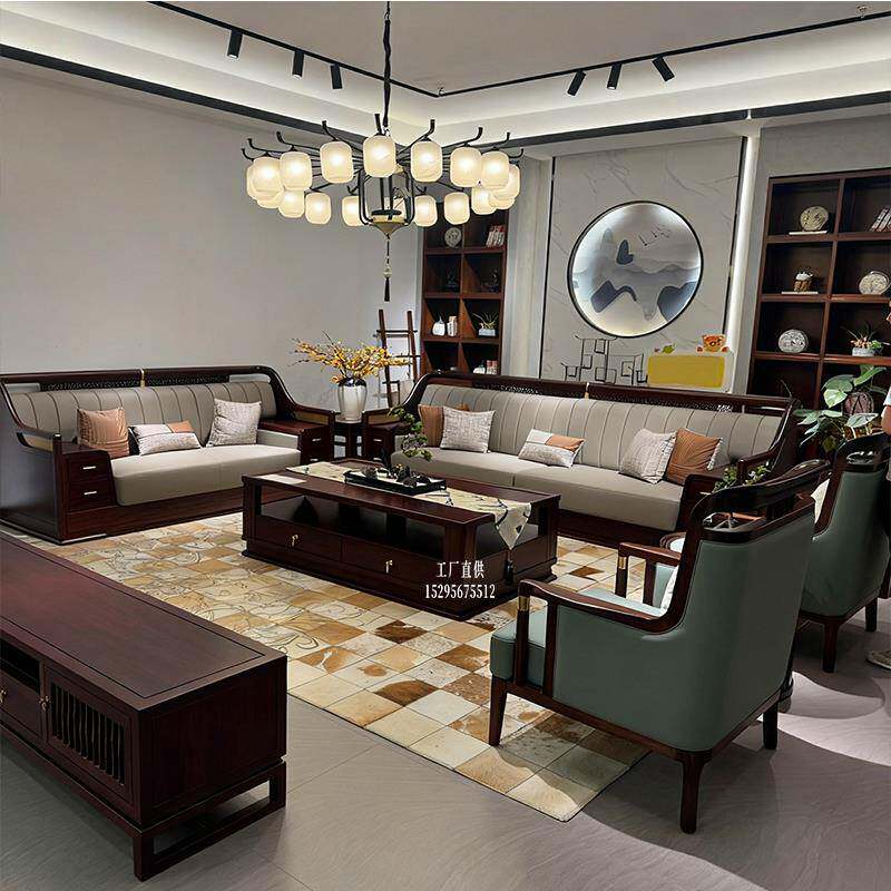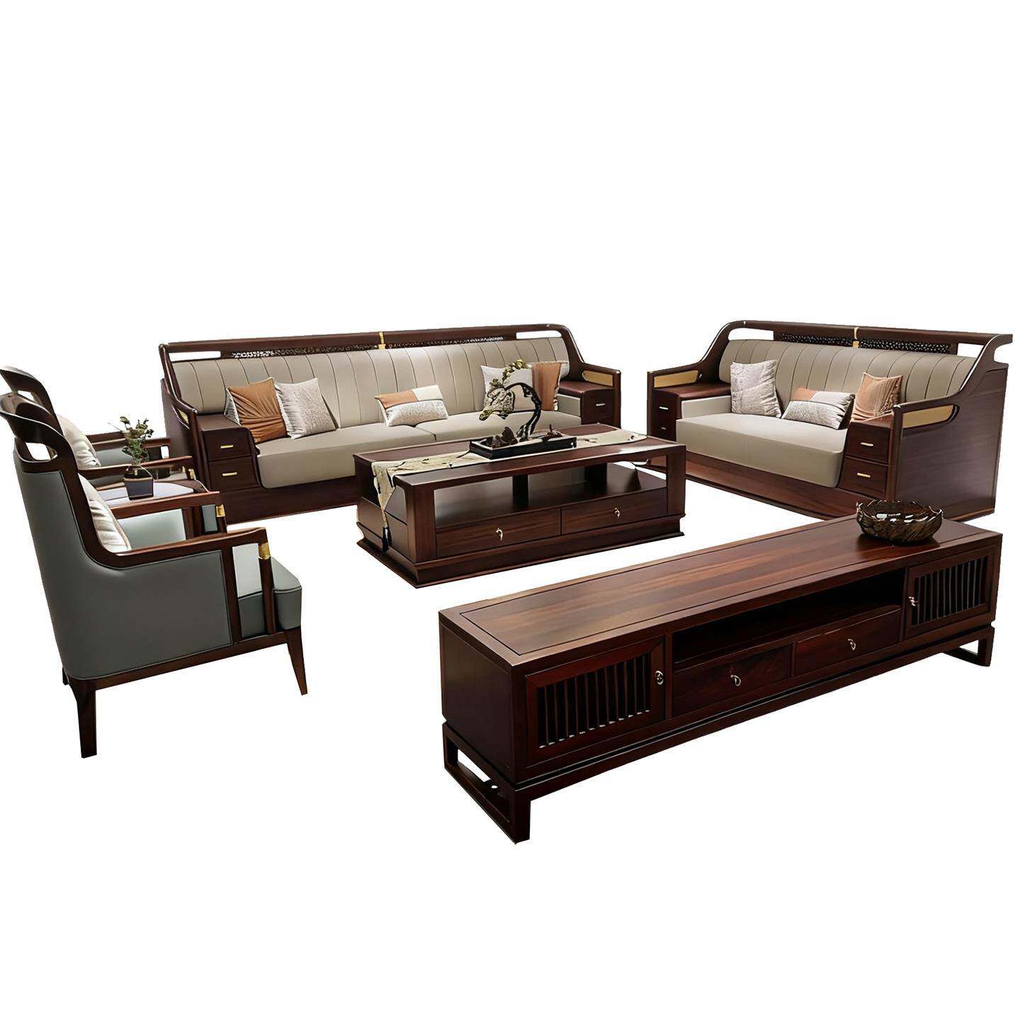 新中式实木沙发组合客厅小户型简约真皮乌金木沙发高端黑檀木沙发