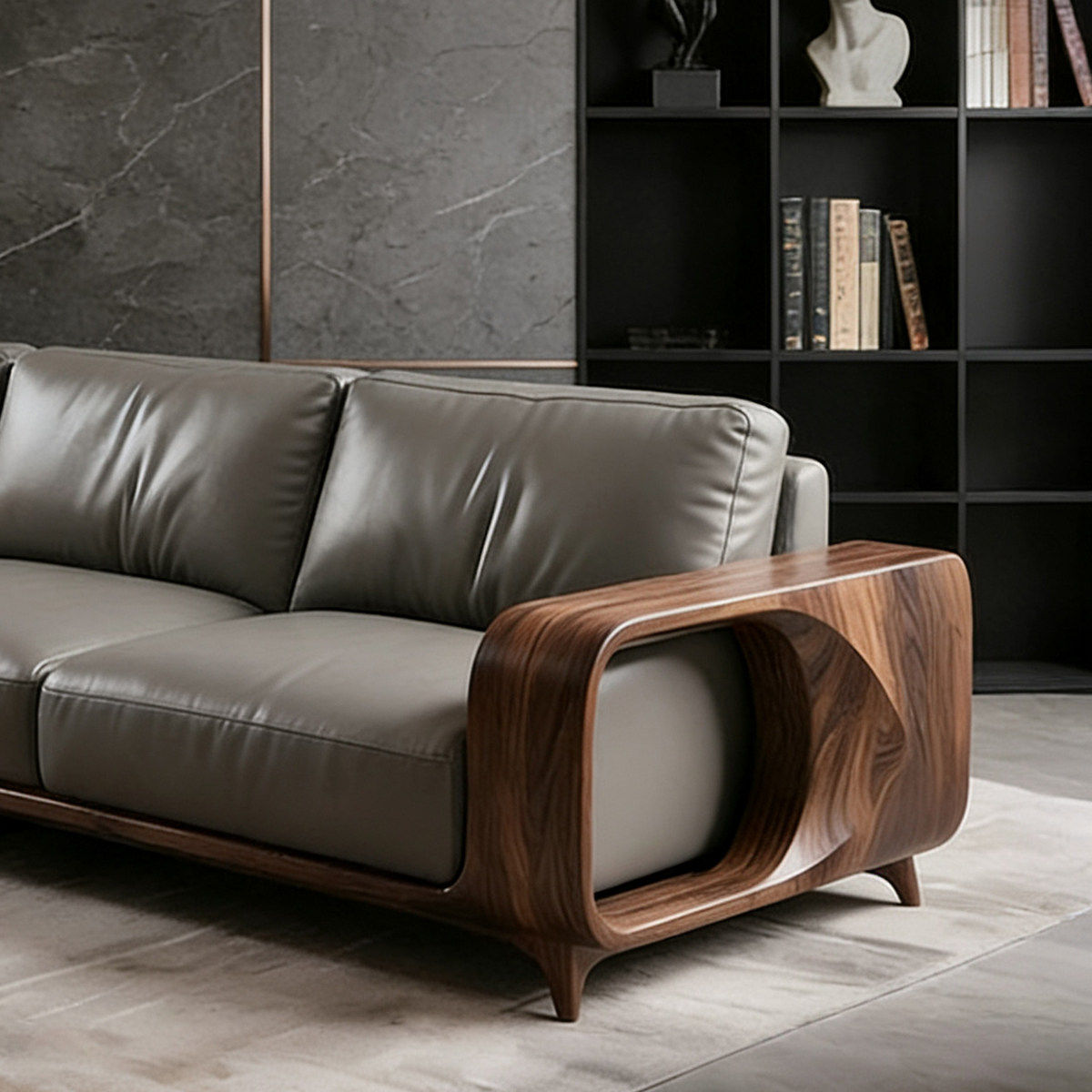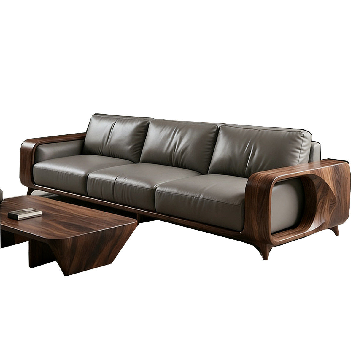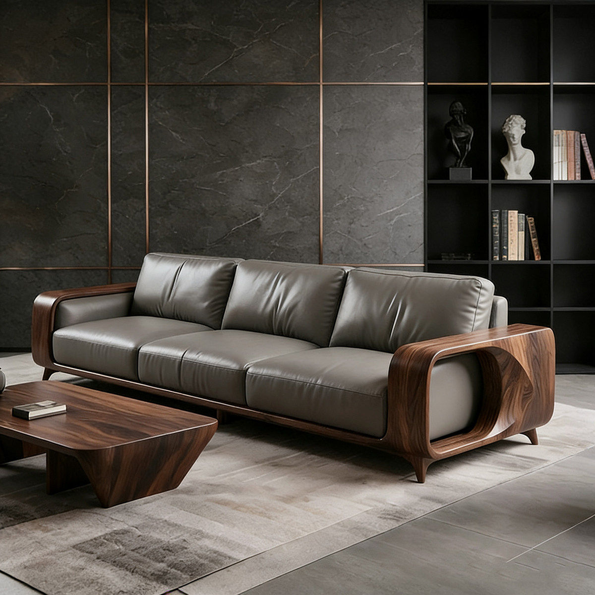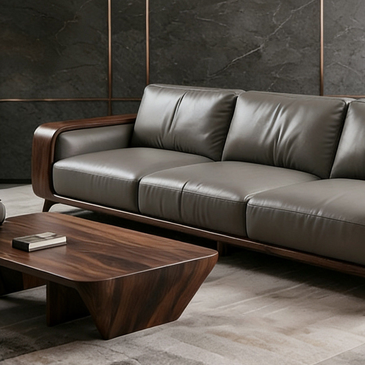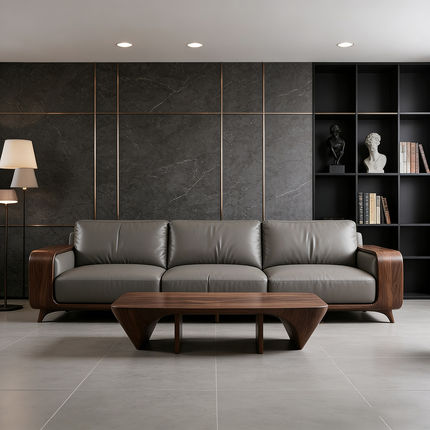 新中式黑胡桃木实木沙发现代别墅客厅直排皮艺三人位轻奢高端家具