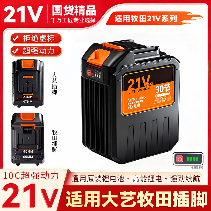 适用牧田大艺款30节超大容量锂电池割草机抹墙机洗车机电池充电