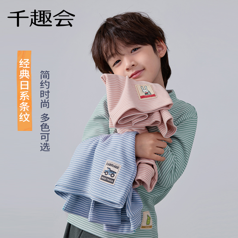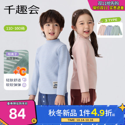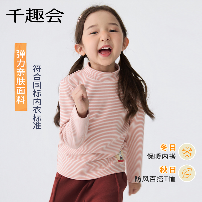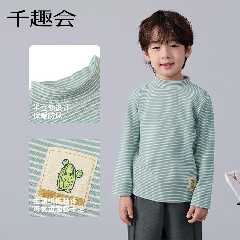 千趣会童装25年秋冬新品男女童加厚T恤阳离子面料贴布绣保暖内衣