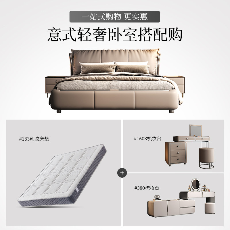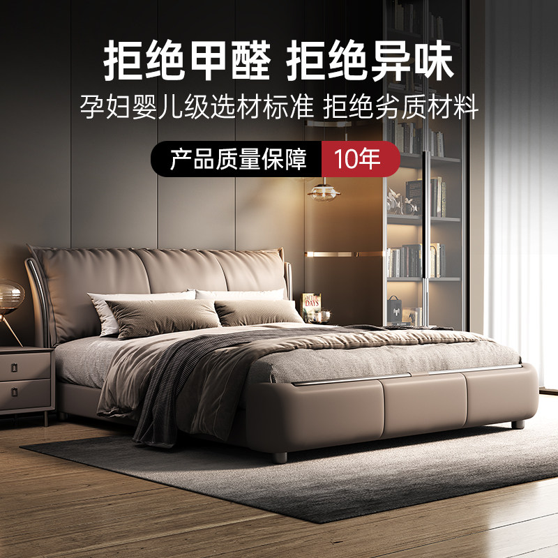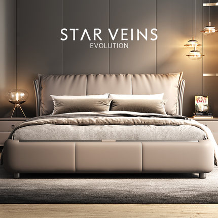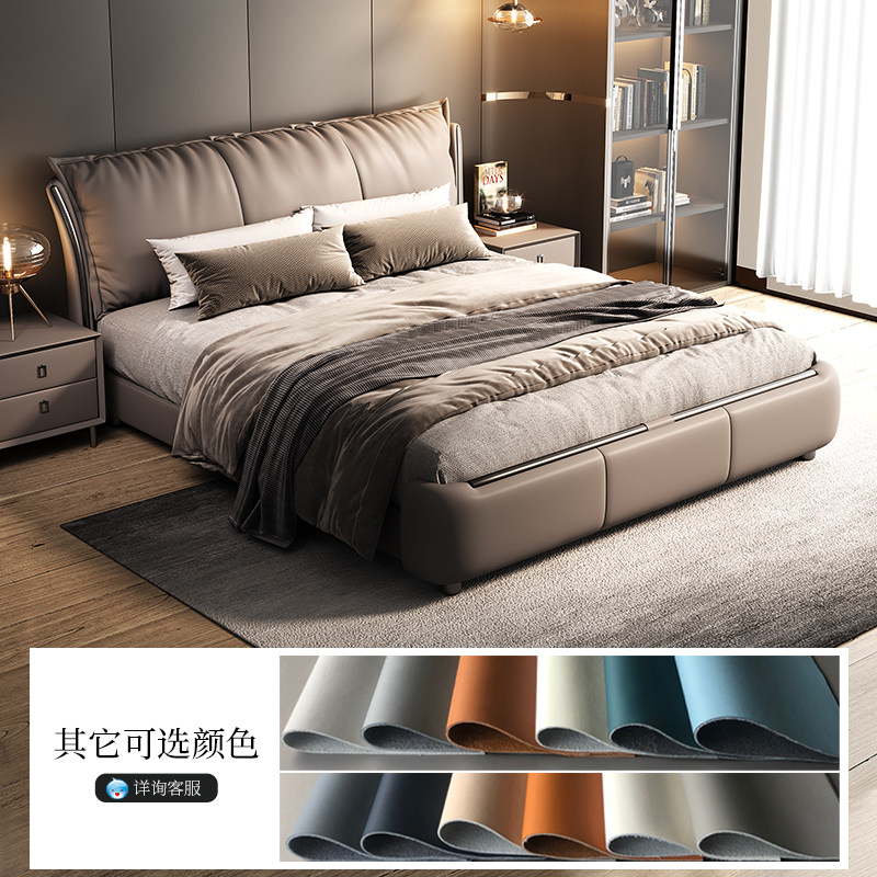 金可儿意式轻奢真皮床现代简约主卧高端大气羽绒软包双人婚床新款