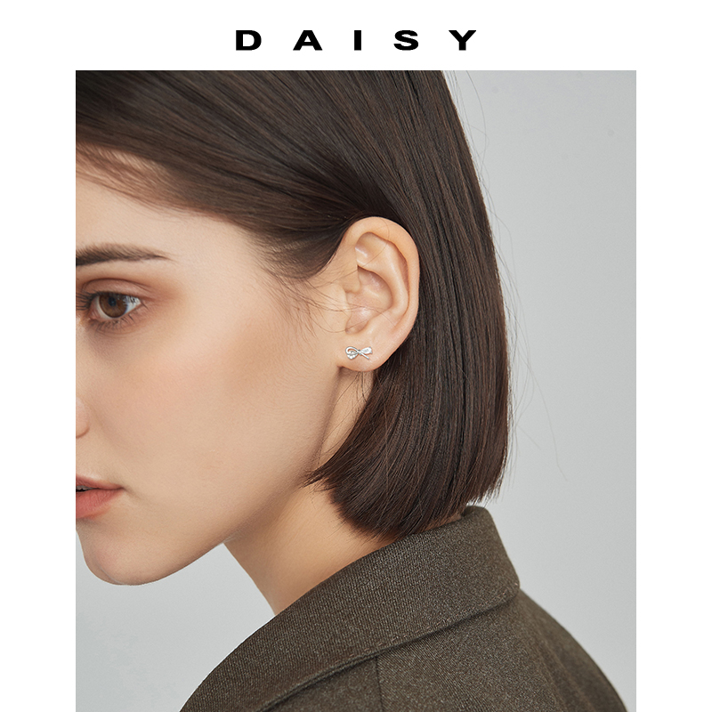 999纯银钻石蝴蝶结耳钉女气质甜酷小众设计感高级耳环ins风耳饰品