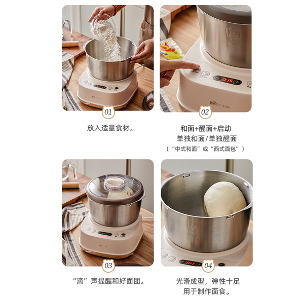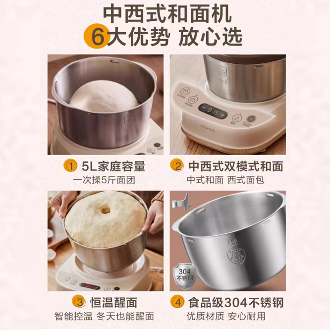 小熊5L和面机揉面全自动多功能电动小型新款不锈钢厨师发酵一体