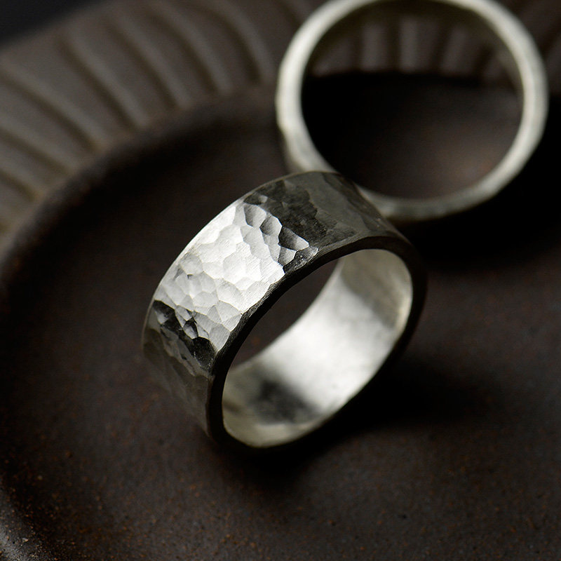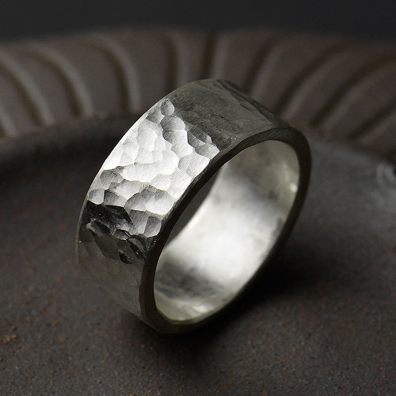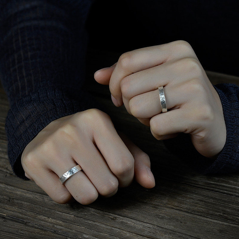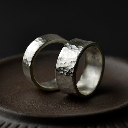 波点锤纹手工纯银戒指不规则纹路足银S999指环定做复古文艺男女款