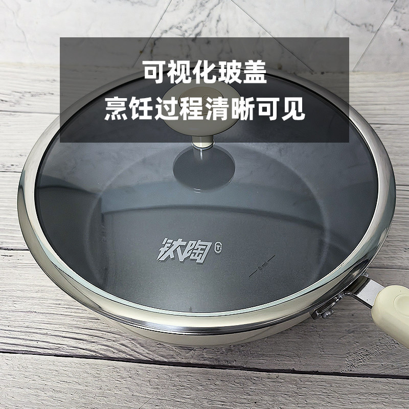 爱仕达钛陶不粘煎锅JL28V9Q家用28cm平底有钛防粘煎炒锅燃电通用