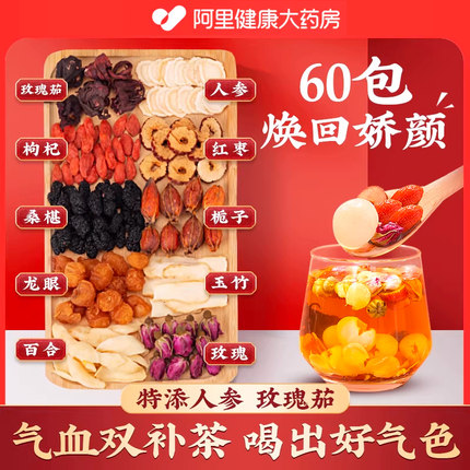 红枣桂圆枸杞玫瑰花茶补气养血调血不足宫寒养生茶女人桑葚