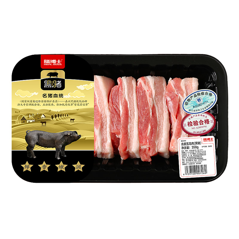膳博士黑猪肉新鲜去皮五花肉原切350g 黑毛土猪中方韩式烧烤食材