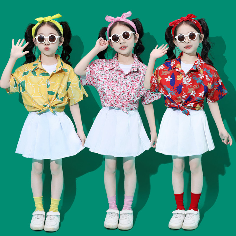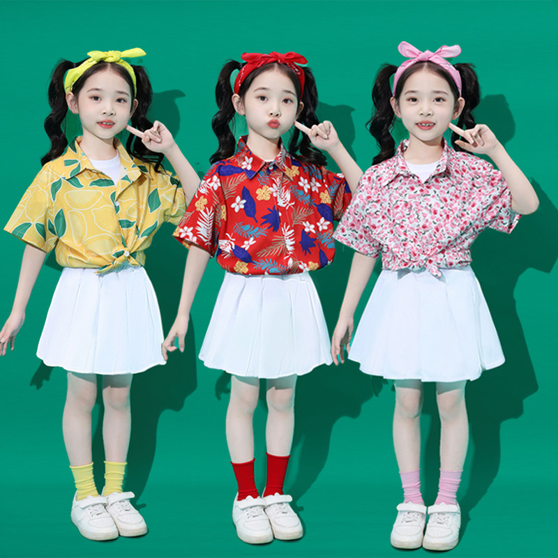 六一港风儿童演出服幼儿园复古花衬衫合唱服男女童啦啦队表演服装