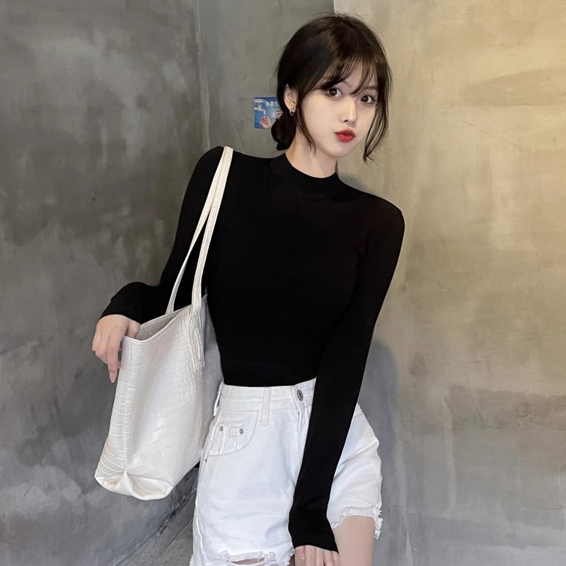 拉夏贝尔莫代尔半高领打底衫女秋冬内搭修身长袖上衣冰丝薄款T恤