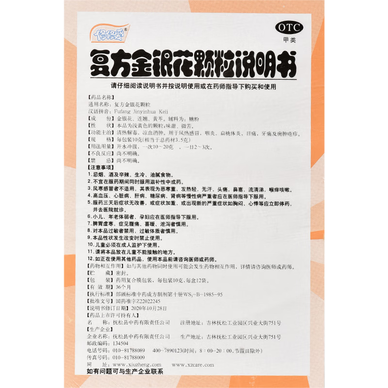 修修爱复方金银花颗粒10g*12袋风热感冒清热解毒咽炎扁桃体炎