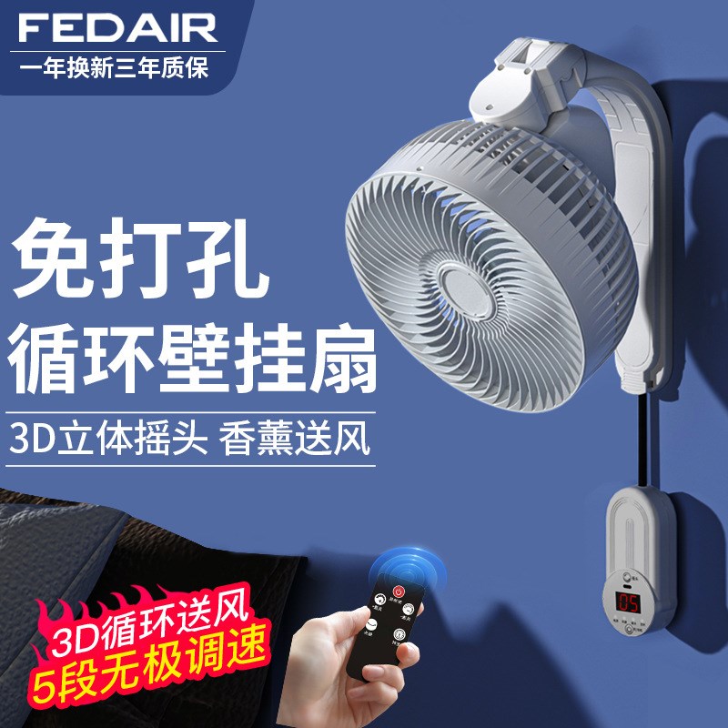 大风力壁扇挂壁式电风扇家用遥控免打孔卧室厨房客厅循环扇可摇头