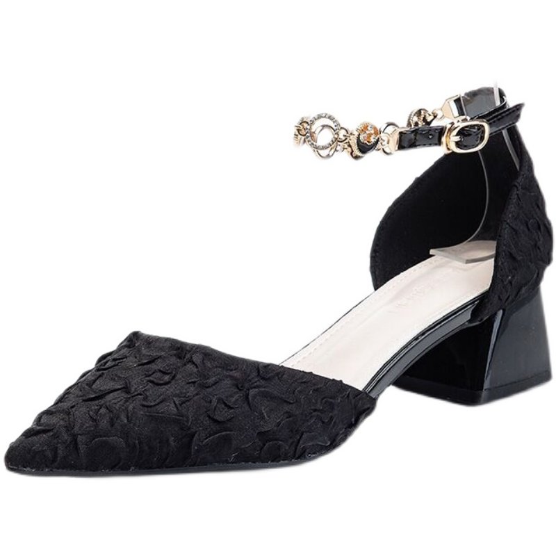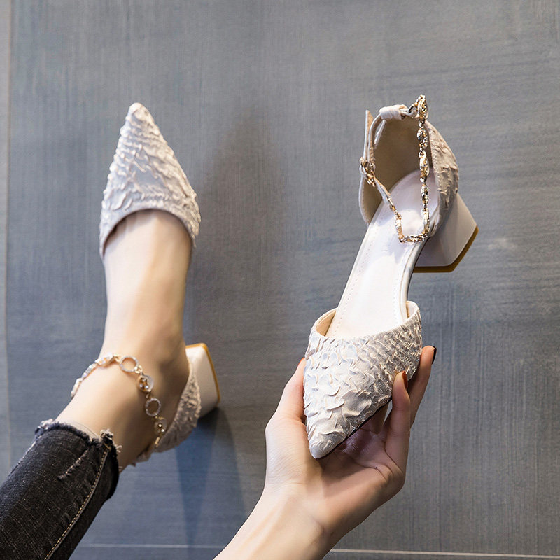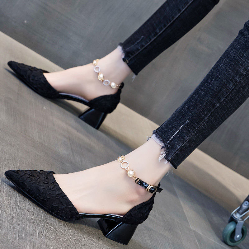 包头凉鞋女3cm粗跟中跟夏季新款时尚百搭仙女风中空单鞋高跟鞋子