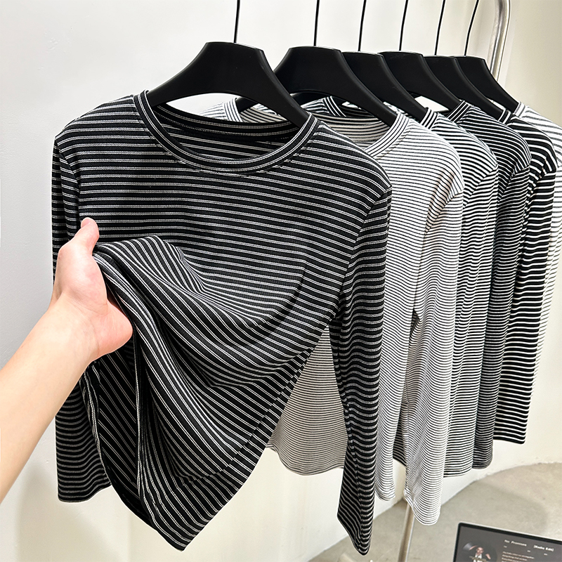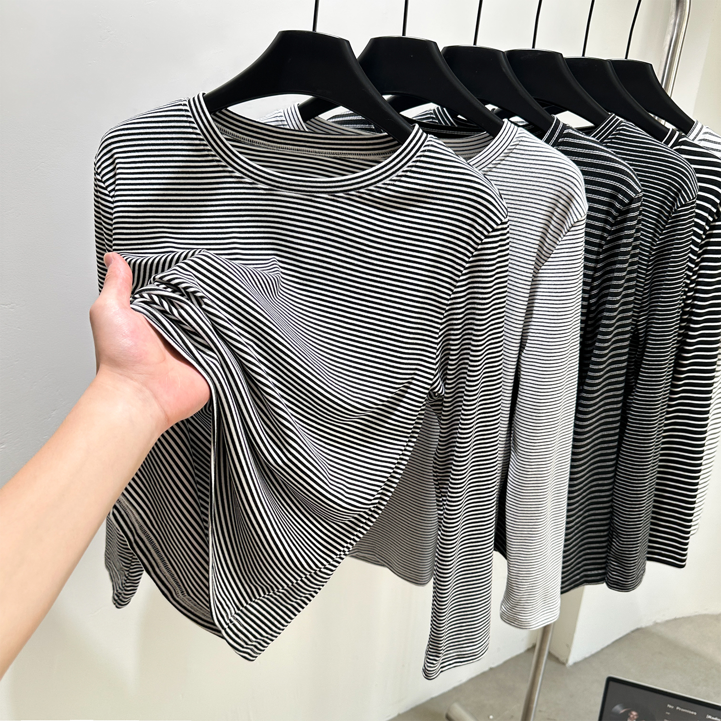 条纹德绒打底衫女秋冬保暖加绒女士内搭2025新款长袖t恤德绒上衣