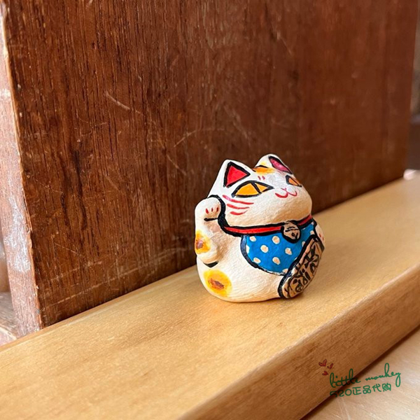 日本代购 招财猫 微笑 职人手工 可爱传统和风张子风开运招福摆件