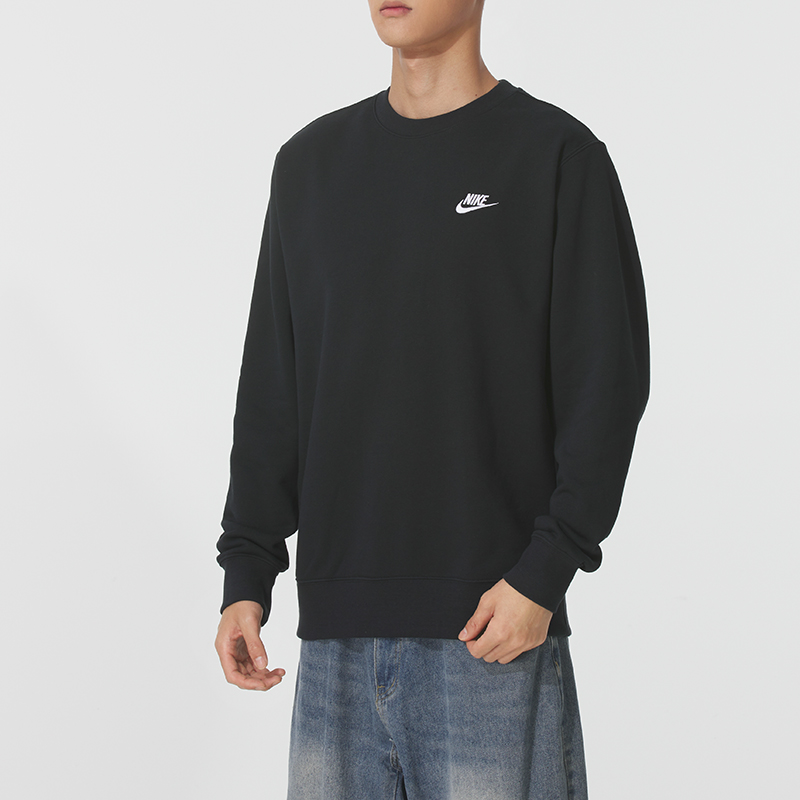 NIKE耐克黑色秋装休闲套装男装圆领卫衣直筒长裤子运动休闲套头衫