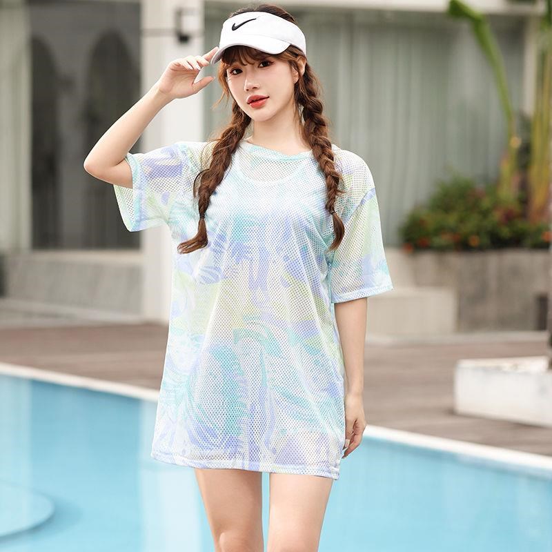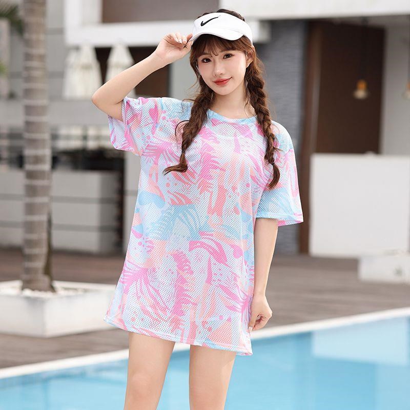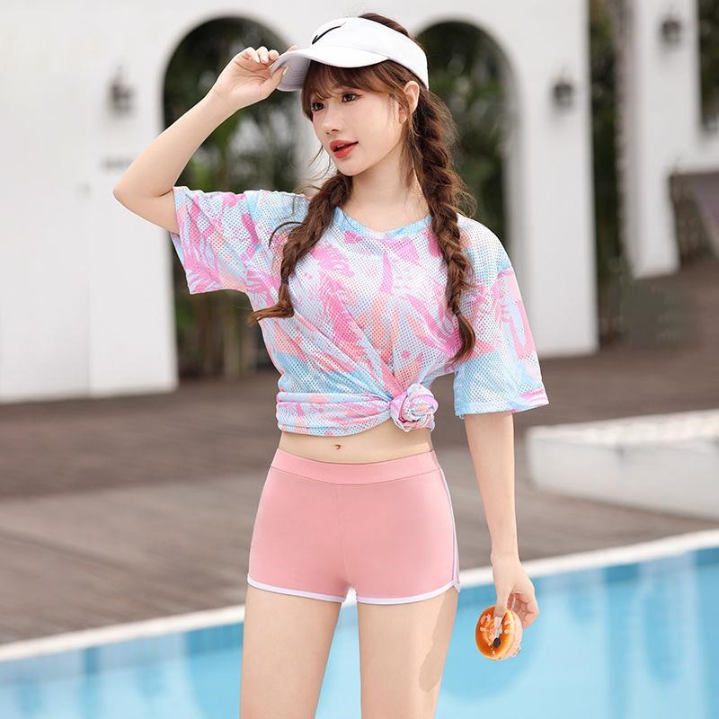 泳衣女款2025新款分体保守大码学生遮肚显瘦海边度假泡温泉三件套