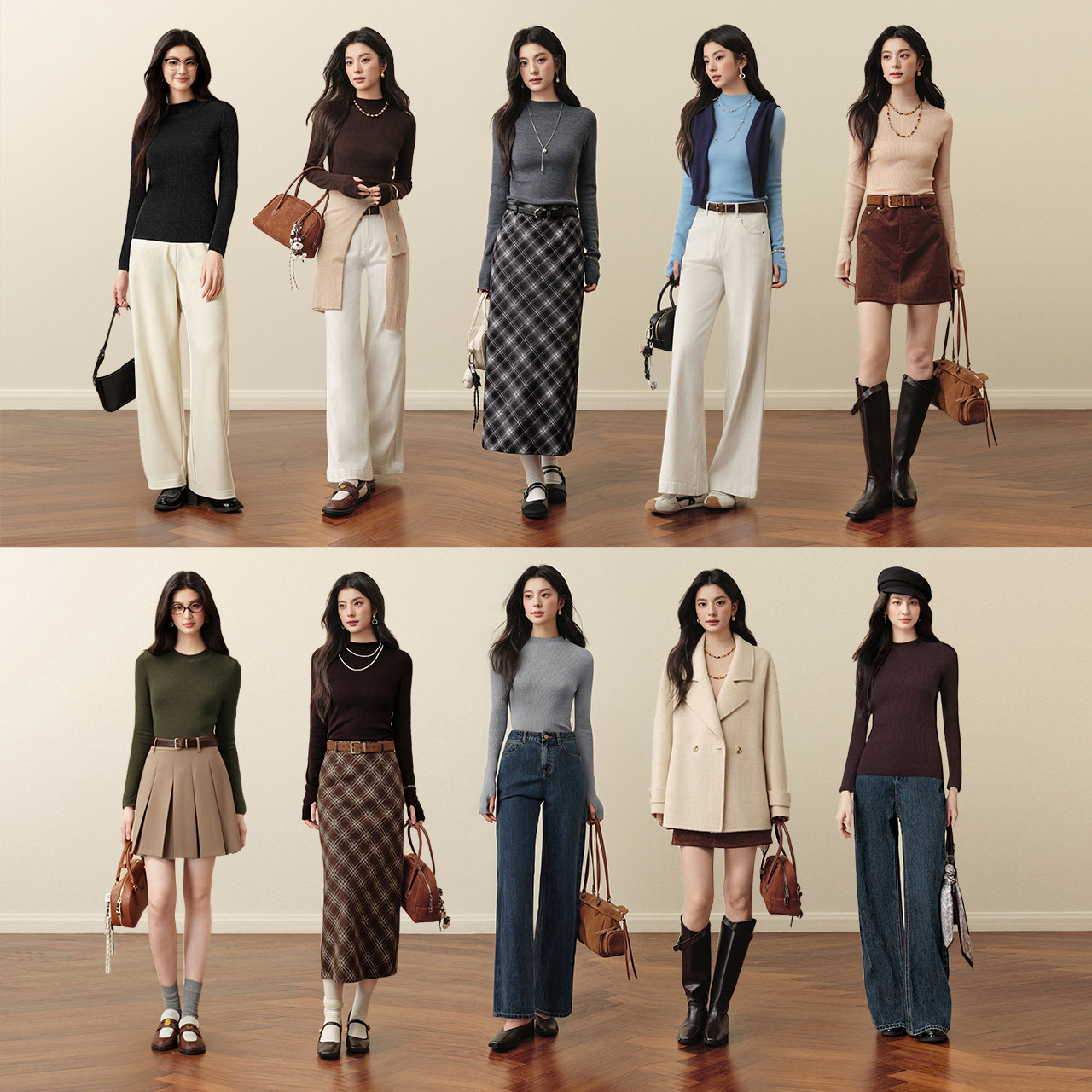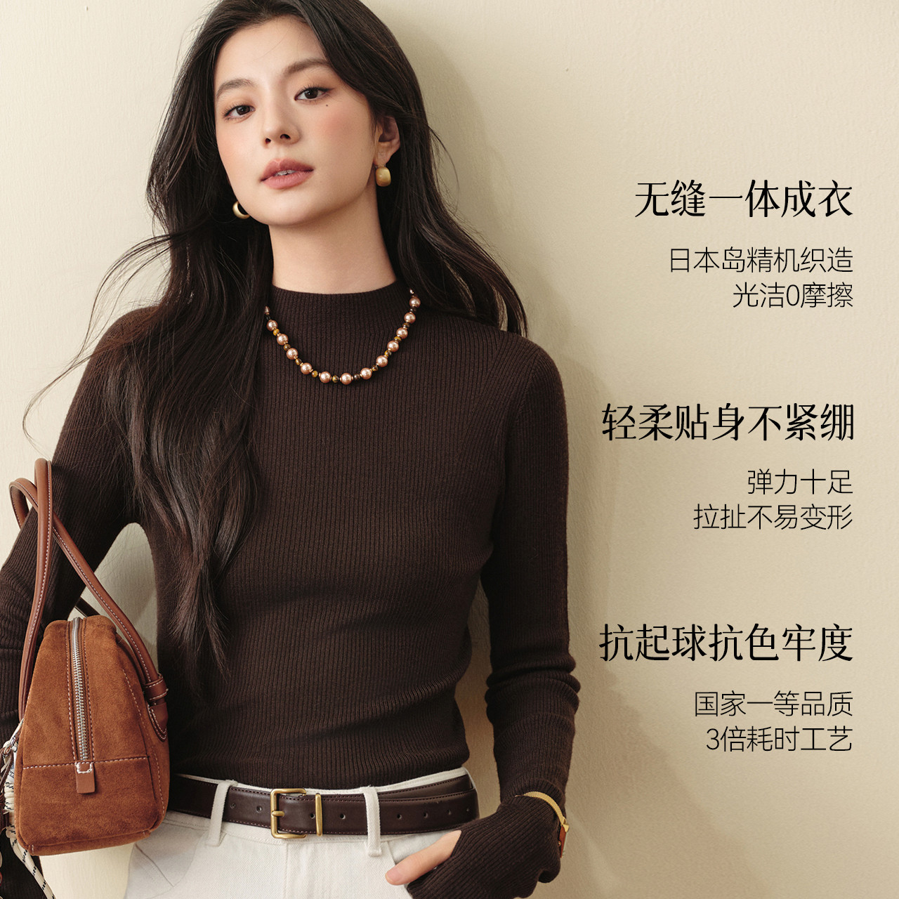 诗凡黎半高领扬子纱羊毛基础打底针织衫2025秋新款内搭修身上衣女