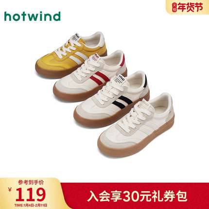 热风薄底德训鞋女2025年冬季新款轻便通勤运动女鞋百搭米色休闲鞋