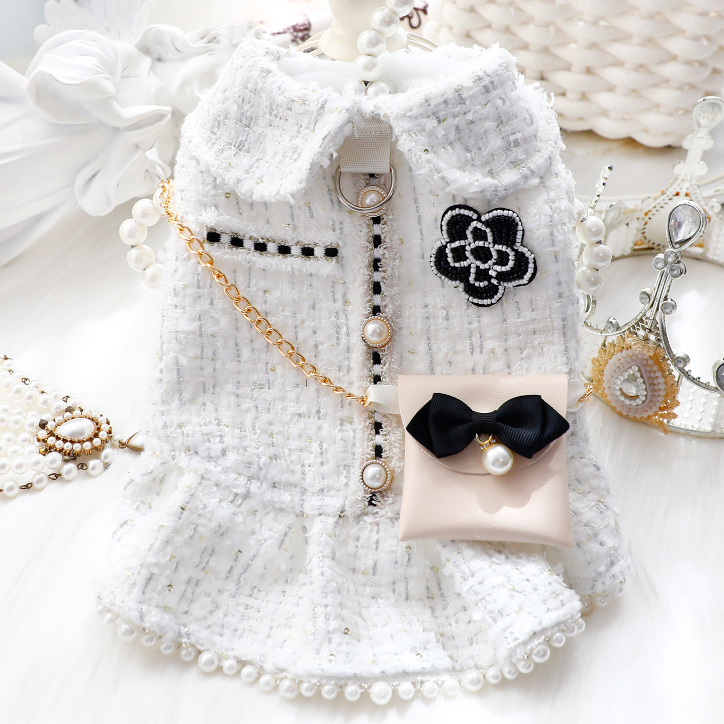 狗狗衣服秋冬装厚款猫咪公主裙小香风背包泰迪比熊小型犬宠物7492