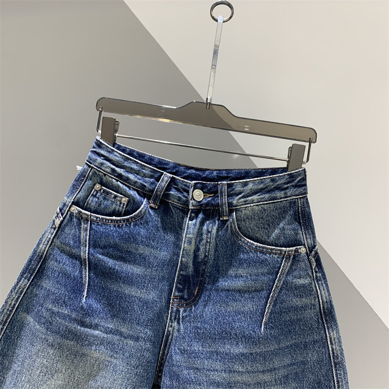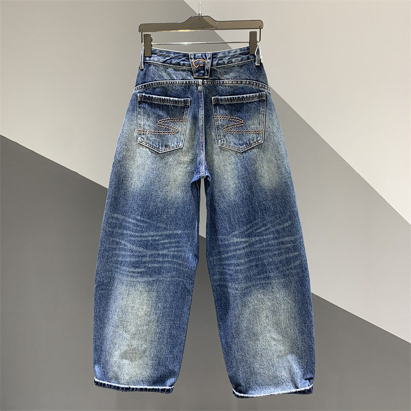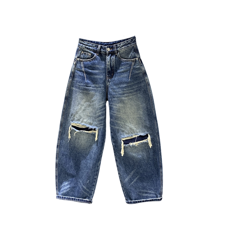 2026年春季新款个性破洞贴布牛仔哈伦裤女百搭宽松做旧弯刀裤长裤