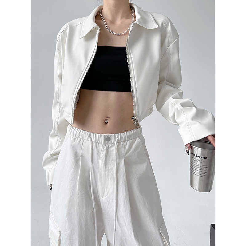 白色爆款短款pu皮衣外套女夹克2024冬装新款港风设计感美式复古