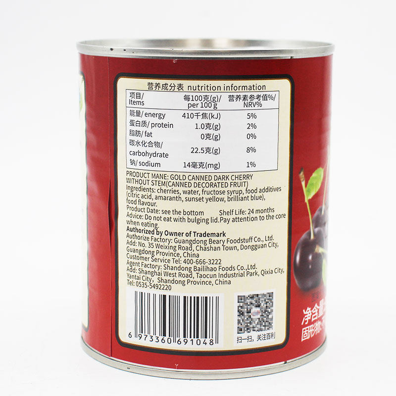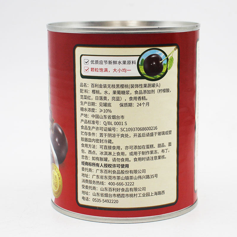 百利金装黑樱桃850g无枝黑车厘子水果罐头黑森林蛋糕西点烘焙DIY