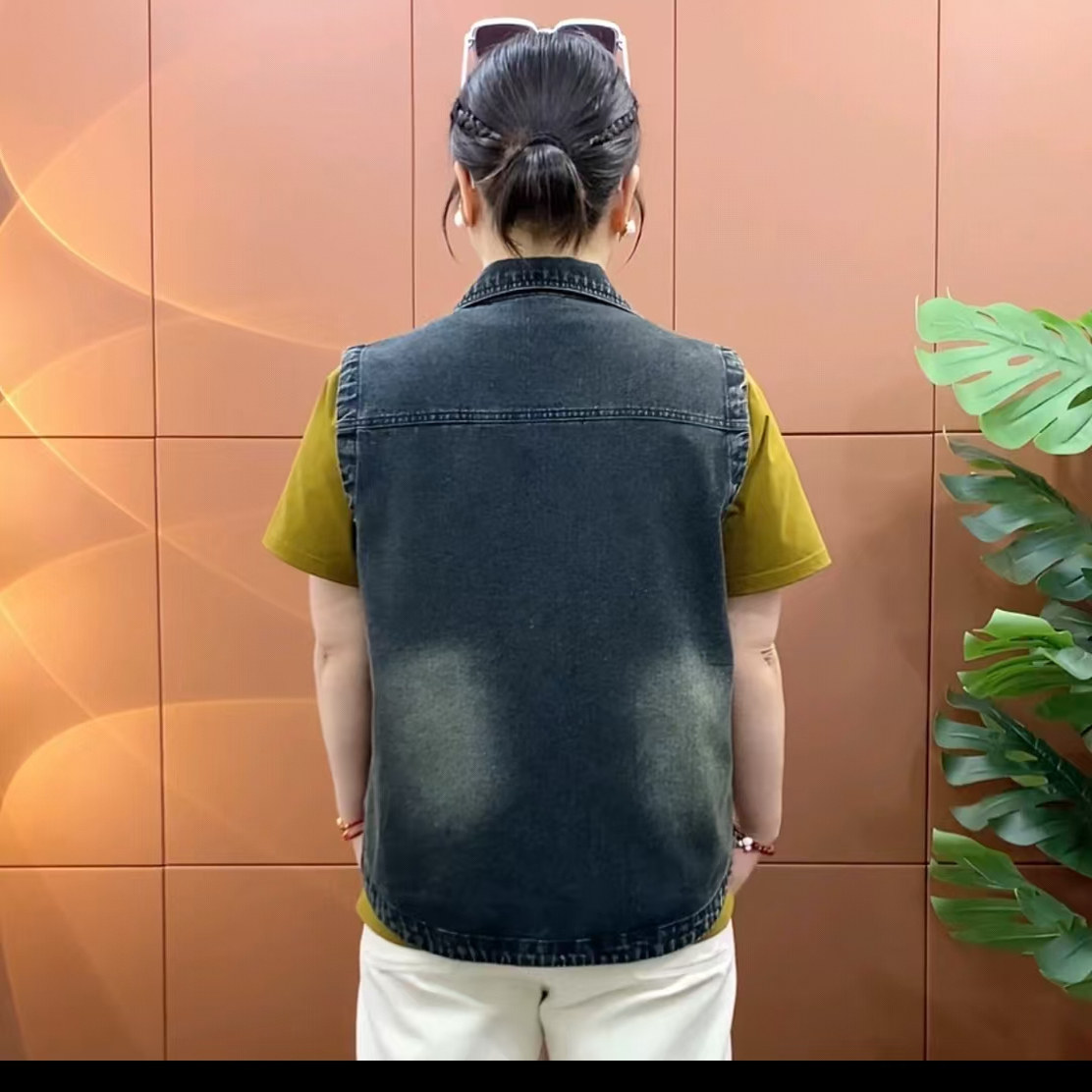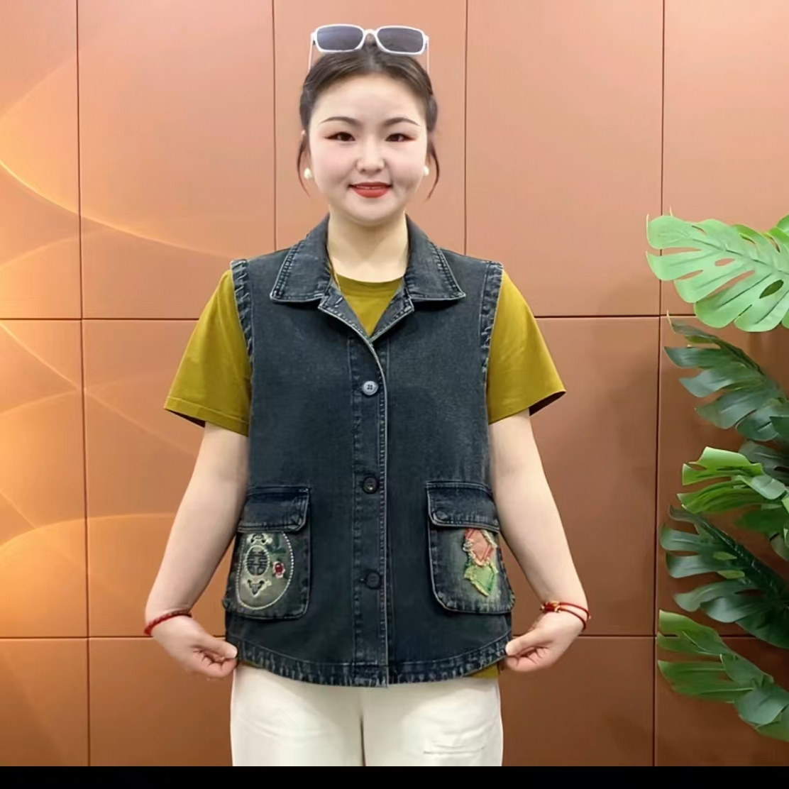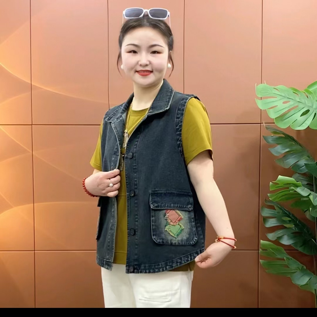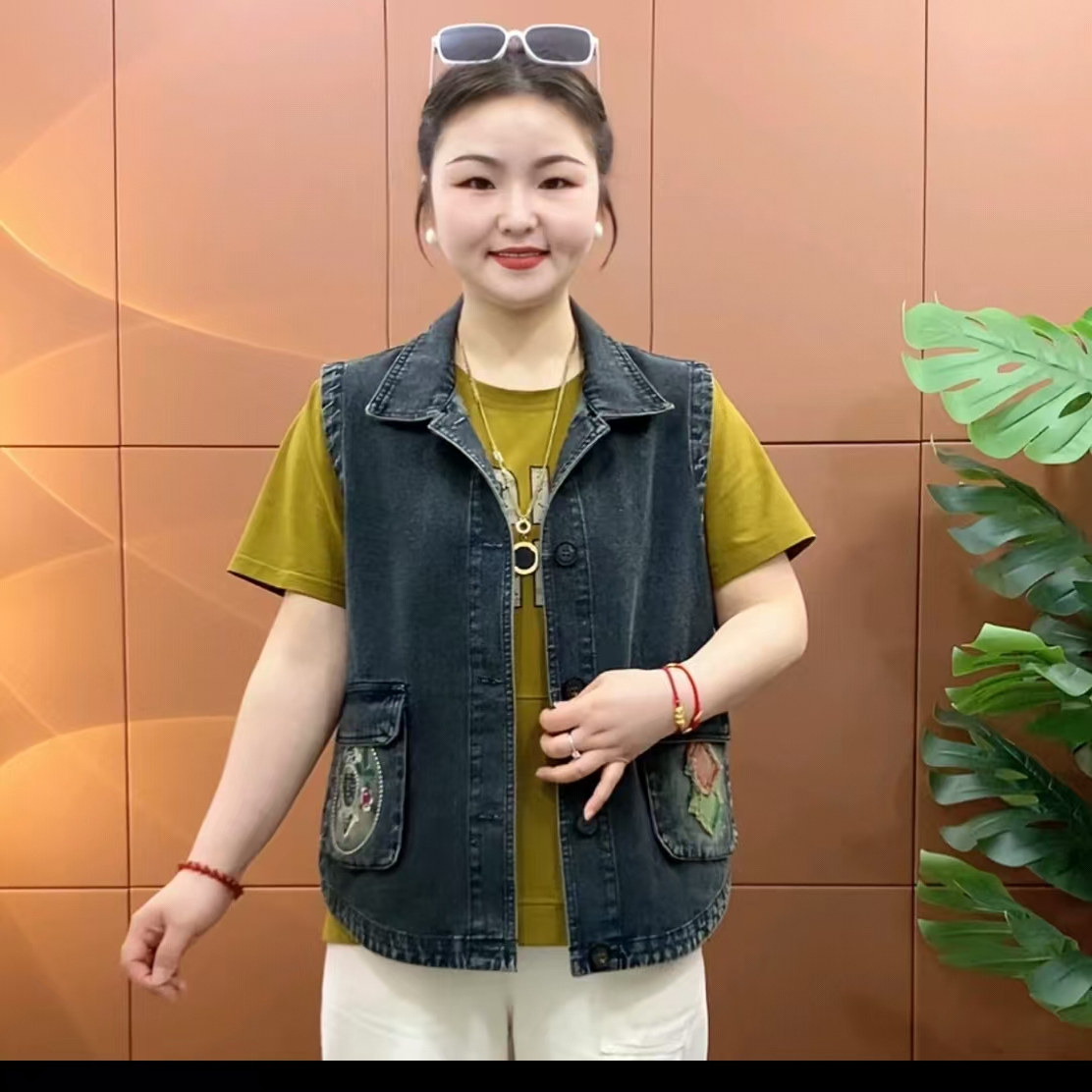 夏季外穿马甲休闲百搭宽松大码洋气复古无袖中年女士水洗牛仔马甲
