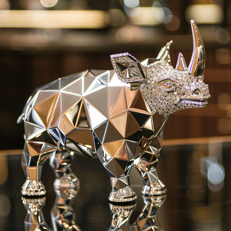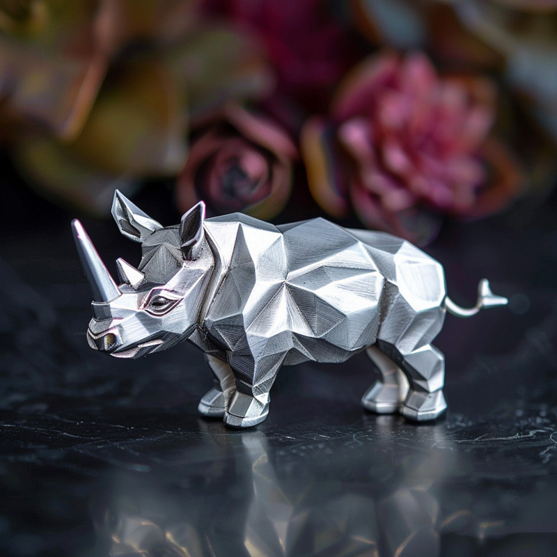 千族银 高端原创高级感犀牛胸针办公桌车载摆件服装配饰私人定制