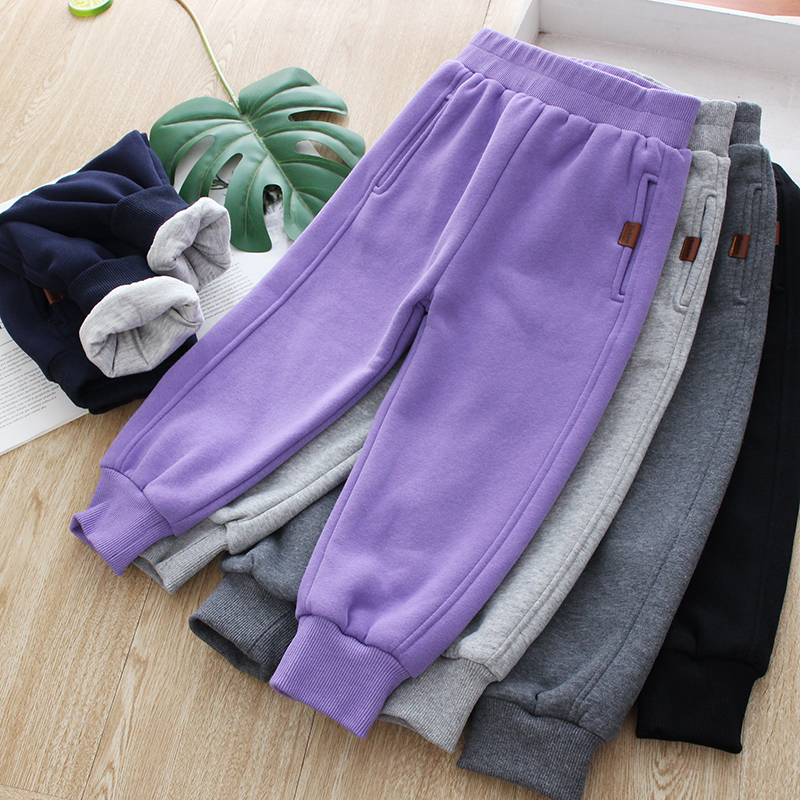 儿童纯棉双层运动裤宝宝加厚夹裤男女童棉裤宽松收脚卫裤秋冬新款