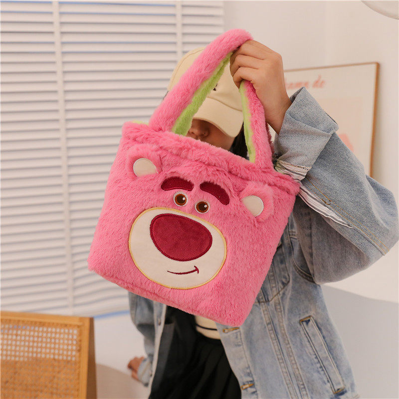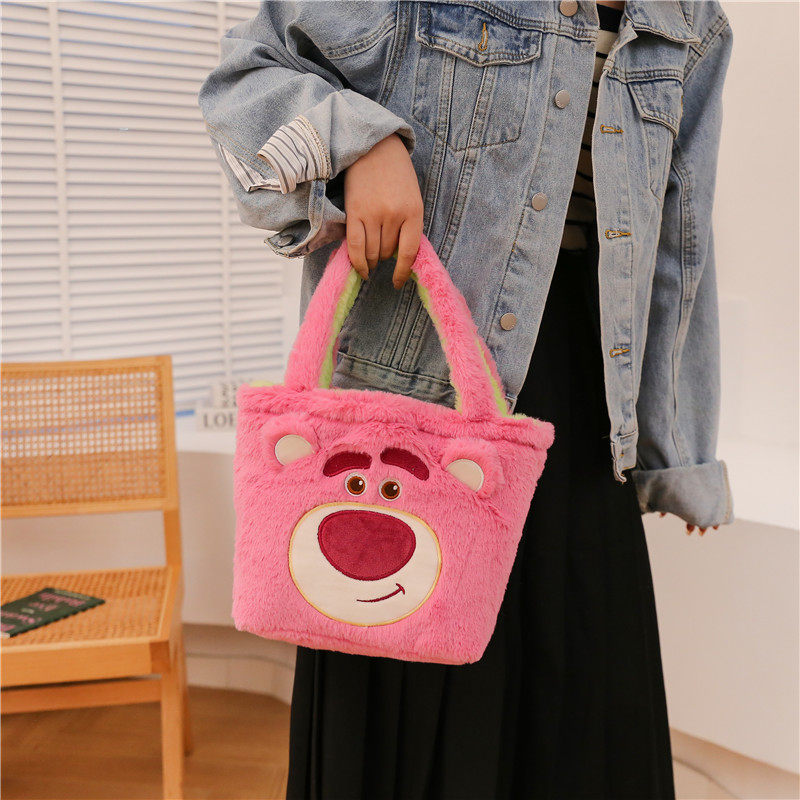 繁瑟手提包卡通休闲草莓熊毛绒包
