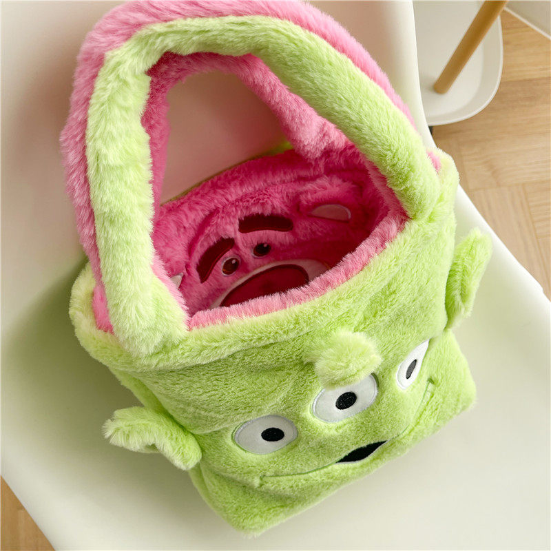 毛毛绒包包女新款双面包少女心软妹化妆手提包草莓熊三眼怪卡通包