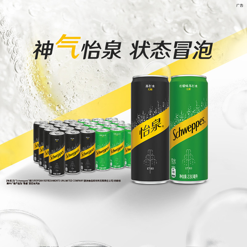 怡泉原味柠檬味苏打水+C柠檬味气泡水饮用水330ml*24罐混合口味装