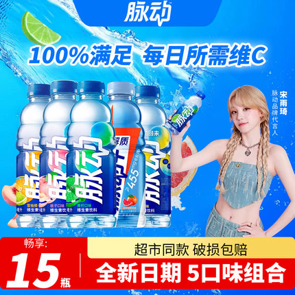脉动维生素饮料600ml*15瓶整箱青柠味桃子味西柚味运动补水饮料